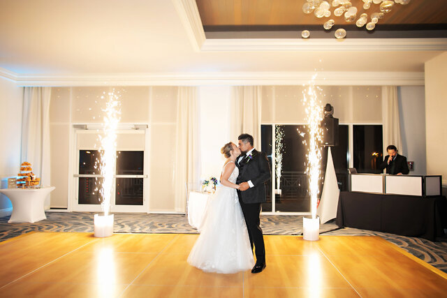 Our Cold Spark Machine Pair delivers a stunning indoor-safe spark fountain effect that looks just like professional concert pyrotechnics — without the heat, smoke, or fire hazards. These state-of-the-art machines create beautiful, controlled spark plumes that shoot straight up, adding dramatic flair to grand entrances, first dances, award ceremonies, and epic dance floor moments.